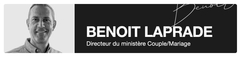 Pasteur Benoit est le responsable des couples avec son épouse Nancy. Leur plus grand désir est de voir des couples et des familles solides briller pour Jésus. Ensemble, ils ont deux enfants et servent Dieu passionnément à Nouvelle Vie depuis de nombreuses années.